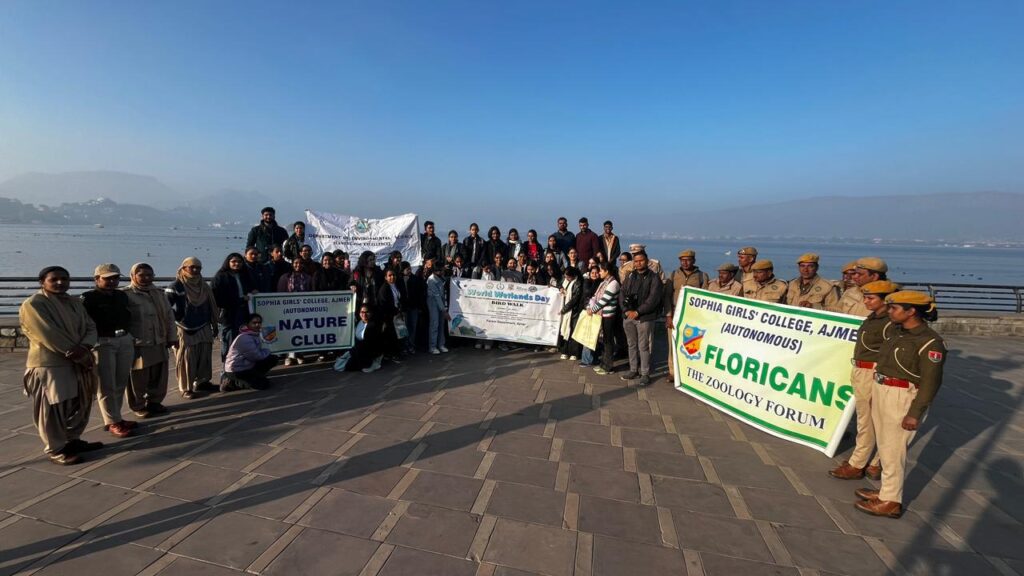 विश्व नम भूमि दिवस के अवसर पर इको क्लब, पर्यावरण विज्ञान विभाग, महर्षि दयानंद सरस्वती विश्वविद्यालय, सोफिया कॉलेज अजमेर एवं वन विभाग अजमेर के संयुक्त तत्वावधान में आनासागर झील के किनारे बर्ड वॉक का आयोजन किया गया। इस अवसर पर विद्यार्थियों के साथ-साथ बड़ी संख्या में पर्यावरण के प्रति जागरूक नागरिकों ने उत्साहपूर्वक सहभागिता की।