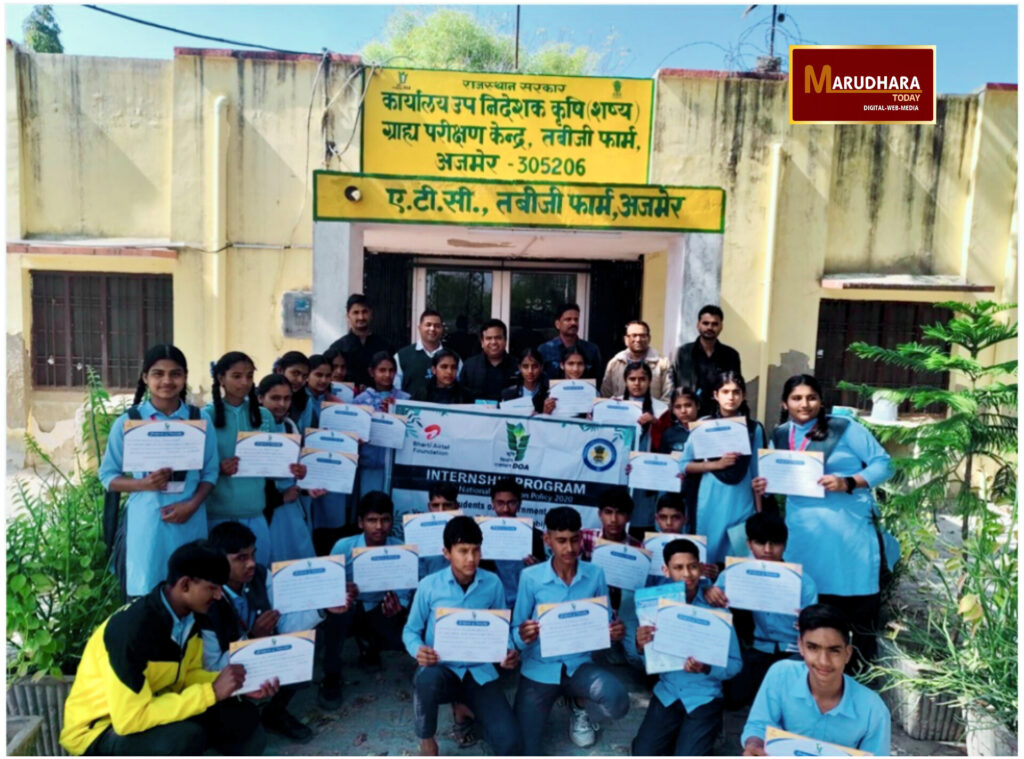कृषि अनुसंधान अधिकारी (रसायन) डॉ. कमलेश चौधरी ने विद्यार्थियों को फार्म पर प्राकृतिक खेती व जैविक खेती मॉडल अवलोकन करवाया। प्राकृतिक खेती व जैविक खेती का महत्व बताया। इस दौरान प्राकृतिक खेती व जैविक खेती में काम आने वाले आदान जैसे-नीमास्त्र व जीवामृत के महत्व व बनाने की विधि के बारे में प्रायोगिक जानकारी दी। कृषि अनुसंधान अधिकारी (शस्य) श्री रामकरण जाट ने छात्रों को फार्म पर भ्रमण करवाकर विभिन्न फसलीय परीक्षणों के बारे में जानकारी दी। विभिन्न फसलों यथा चना, जीरा, सरसों, गेहूं व जौ पर लगने वाले कीट-रोगों के बारे में बताया। जैविक विधि से खरपतवार प्रबंधन के महत्व के बारे में बताते हुए जैविक विधि से खरपतवार प्रबंधन की प्रायोगिक जानकारी दी।